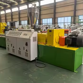 這是整個生產(chǎn)流程的核心環(huán)節(jié)。混合好的粉料通過真空上料機被吸入錐形雙螺桿擠出機的料斗中。