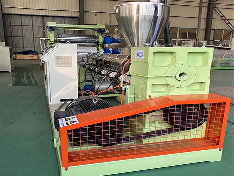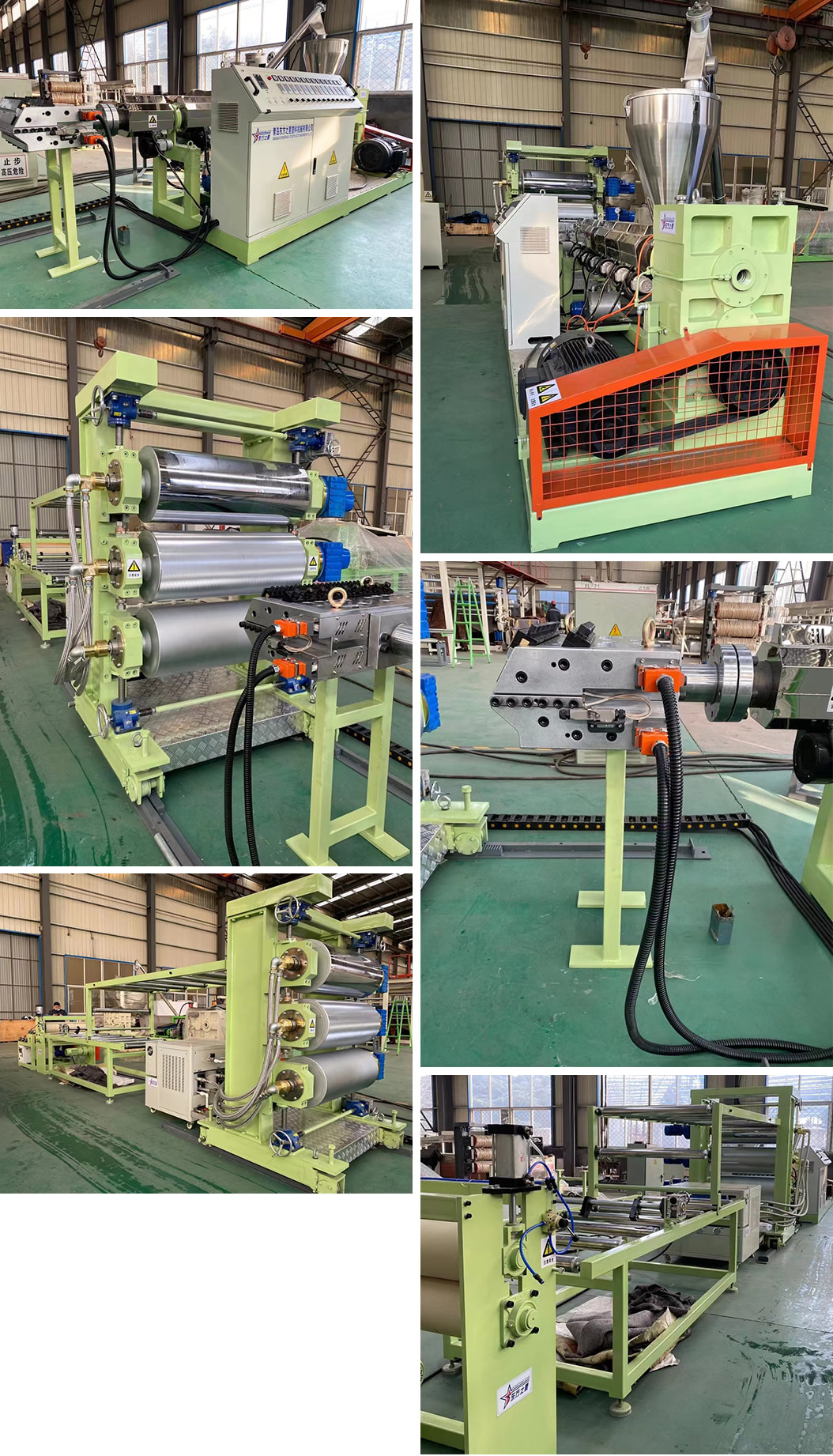 該設(shè)備采用SJ90-33比1單螺桿擠出機(jī)、液壓自動(dòng)換網(wǎng)器、T型彈性??诳烧{(diào)模具、立式三輥壓光機(jī)、三合一水溫機(jī)、不銹鋼冷卻托架、橡膠輥牽引機(jī)、雙工位氣漲軸收卷機(jī)。生產(chǎn)線采用:日本歐姆龍智能溫控儀、西門子低壓電器、國內(nèi)外馳名品牌的偉創(chuàng)變頻調(diào)速器。所生產(chǎn)的片材經(jīng)二次加工后主要用于:農(nóng)業(yè)種植育苗容器;水果、蔬菜、食品的硬包裝;化妝品、五金工具、兒童玩具的外包裝等。